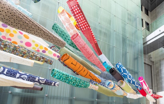 日本橋は、伝統と革新が交錯し、数多くのクラフト(手工芸)が息づく街。昨年、須藤はそんな日本橋での展示に際し、従来のNUNOのコレクションに加えて、日本橋界隈のものづくり企業とのコラボレーションによる特別な「こいのぼり」を制作しました。