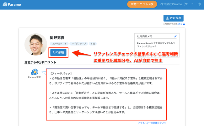 株式会社Parame(本社:東京都新宿区、代表取締役:岡野亮義、以下「Parame」)は、採用時のミスマッチを防ぐリファレンスチェックサービス「Parame Recruit」にて、世界的に注目されるOpenAI社のChatGPTのAI技術を活用した「リファレンスチェック結果からリスクの自動抽出」「リファレンスチェック時の質問内容の自動生成」等ができるAIサポート機能(β版)をリリースしました。