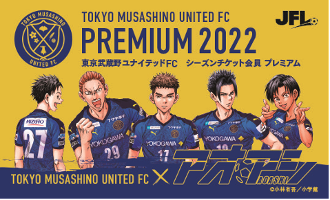 2022シーズンより、東京武蔵野ユナイテッドFC(JFL所属)は、人気サッカー漫画『アオアシ』(原作:小林有吾/小学館)とのコラボレーションが決定いたしました。累計900万部突破、第65回小学館漫画賞一般向け部門を受賞、いまもっともアツいサッカー漫画『アオアシ』とコラボレーションできることを大変光栄に思います。また、原作者である小林有吾先生には弊クラブへのご協賛も頂き、Jリーグまでの道程を力強く後押しして下さることは、クラブとしても身が引き締まる思いでございます。