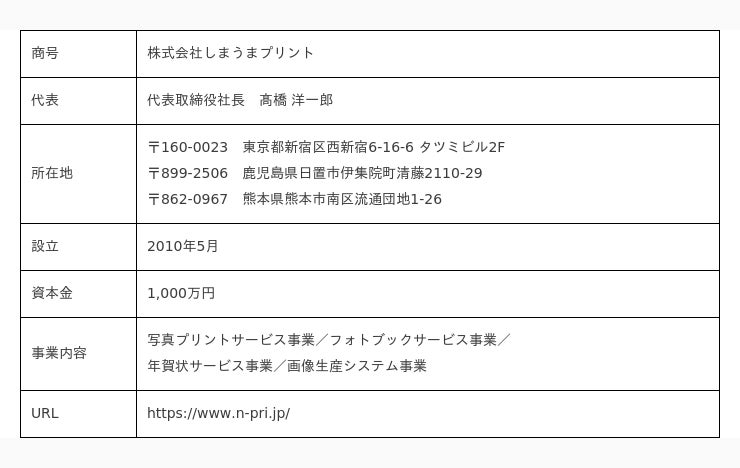 しまうまプリントは「すべての想いを身近に 時をつなぐ会社になる」というミッションのもと、ネットプリント専業で「しまうまプリント( https://www.n-pri.jp/ )」サービスを運営している企業です。