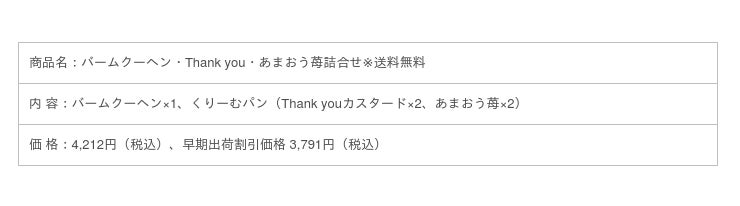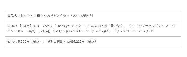 今年新発売した特許取得機械で焼き上げる「ハート形のバームクーヘン」や、定番のくりーむパン カスタード味に焼印を施した「Thank youくりーむパン」等、見た目からもありがとうの気持ちが伝わる商品を含むセットや、様々な商品をご家族皆様でお楽しみいただけるバラエティーセットをご用意しました。また、母の日より少し前の4月末のお届けで、お得な料金でご購入いただける「早期出荷割引」もご用意しております。八天堂母の日ギフトで絆が深まる美味しいひとときをお過ごしください。