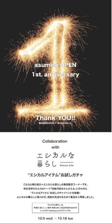 明日見世にて1 年間応援くださったお客様への感謝をお伝えする特別ガチャイベントを開催、フォロワー3.9 万人のインスタグラムアカウント「エシカルな暮らし」(※1)とコラボレーションを通して実現いたします。