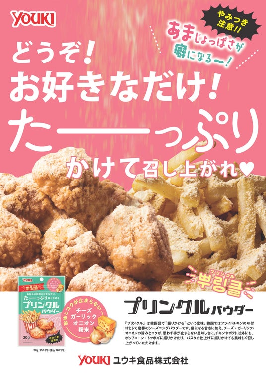 中華・エスニック料理を中心に、世界各国の調味料や食材を幅広く取り扱うユウキ食品株式会社(本社:東京都調布市富士見町1-2-2、代表取締役社長:田中秀和)は、チーズ・ガーリック・オニオンの旨みとコクが止まらない韓国発のシーズニングパウダー「プリンクルパウダー」を、9月1日(日)から全国で一斉に販売を開始いたします。