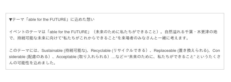 テーマ「able for the FUTURE ~未来のために私たちができること~」