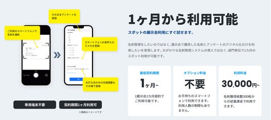 - 料金は30,000円~、名刺獲得枚数300枚からの従量課金制