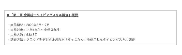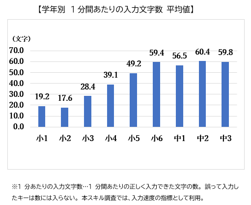 2022年「第1回全国統一タイピングスキル調査」:小学校5年生 49文字 / 中学校2年生 60文字