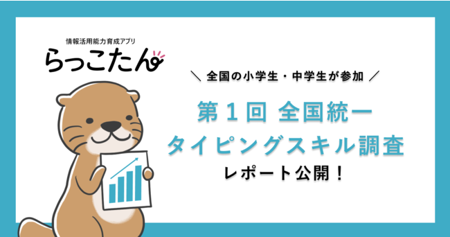 AI電子申請ソリューションの開発を得意とする株式会社ミラボ(本社:東京都千代田区、代表取締役:谷川一也、以下「ミラボ」)と、情報モラル教育・プログラミング教育を手がける株式会社教育ネット(本社:神奈川県横浜市、代表取締役:大笹いづみ、以下「教育ネット」)は、共同開発したクラウド型デジタルAI教材「らっこたん」を使用した「第1回全国統一タイピングスキル調査」の調査結果を一部公開します。