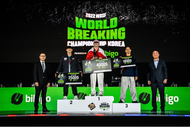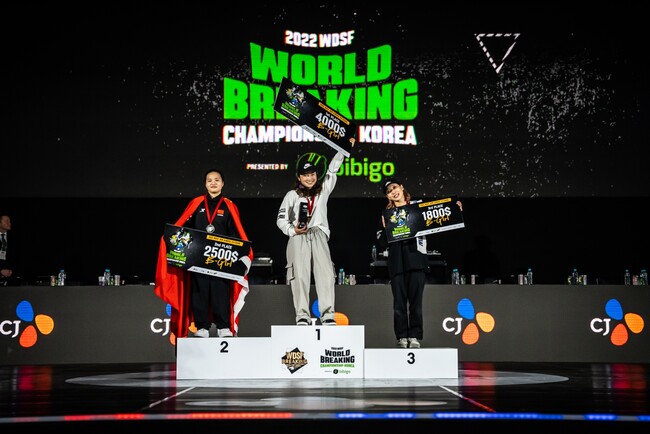 公益社団法人日本ダンススポーツ連盟(Japan DanceSport Federation; 略称JDSF)は、韓国 ソウルにて現地時間10月21日、22日に開催された、WDSF世界ブレイキン選手権(以下 世界選手権)へ日本代表選手の派遣と強化選手の派遣を行いました。本大会は、世界選手権とBreaking for Gold World Series(以下 BfG WS)を兼ねた大会として開催され、2023年に開催されるアジア大会および、2024年に開催されるOlympic Qualifier Series events(以下 OQS)へつながるポイント大会でした。したがって、各国からの男女2名ずつの代表枠に加えて、選手登録のある2008年12月31日以前に生まれた選手が大会に参加することができました。参加選手数は男女それぞれ、男子187名、女子114名が参加し1日目のプレセレクションと呼ばれる予選から、2日目の決勝トーナメントまでを戦いました。