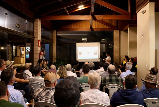 ミナスジェライス州アラシャ地域で開催された生産者向け説明会の様子。地域を代表する約30軒の農家が参加した。