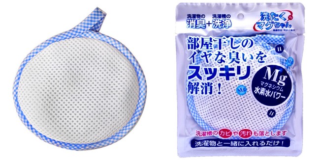 一緒に洗濯機に入れるだけで、高純度マグネシウムの力で繊維の奥まで洗浄し、ニオイも消臭。洗濯槽の汚れも落とします。