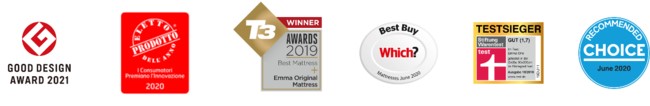 エマ・スリープのマットレスは、特許を取得した技術により、どのような寝姿勢でも、より良い睡眠のための快適さとサポートを提供します。また、本国ドイツやヨーロッパで最も急成長しているスタートアップ企業の1つに選ばれただけでなく、世界各国で数多くのアワードを受賞。日本でも2021年度グッドデザイン賞を受賞しています。