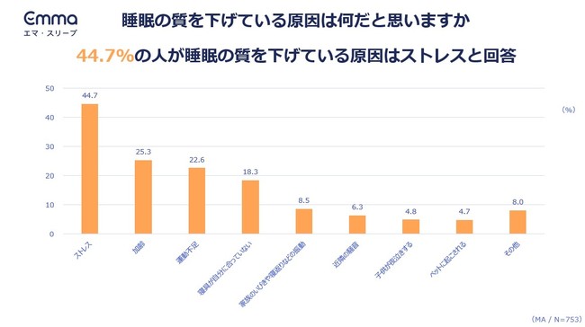~睡眠の質を下げる原因で最も多かったのは「ストレス」~