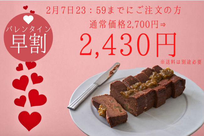 バレンタインに向けての予約販売を開始致します。バレンタインデーである2月14日(火)までにお届けできる最終発送日は、2月8日(水)となりますので、お早めにご注文下さいませ。また、先行予約特典といたしまして、2月7日(火)23:59までにご注文頂いたお客様には通常価格2,700円のところを2,430円にて販売いたします。(製造できる数には限りがございます。 予約数が予定を数上回った場合は 事前予告なく注文受付を終了する場合もございますので 予めご了承いただきます様願います。)