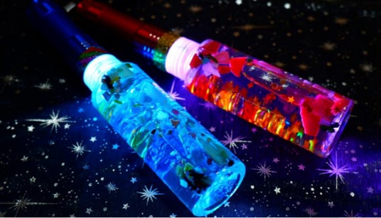 マイクロプラスチックを使って、カラフルなキラキラペンライトをつくります。