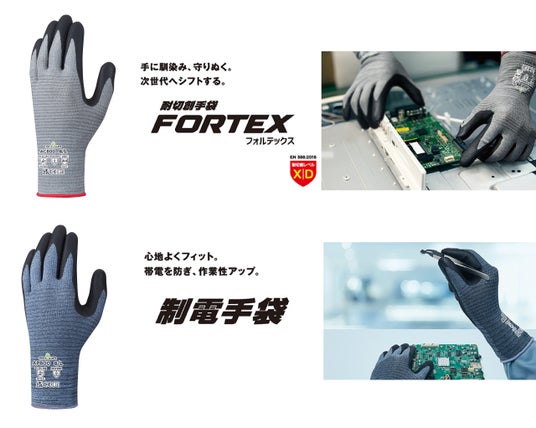 静電気を抑制する制電手袋はこれまでも市場に存在していましたが、加えてスムーズにタッチパネル操作ができる点が評価されました。制電手袋が必要となる現場では、スマートフォンやタッチパネルなどを操作する場面が増えています。手袋を着けたまま機器の操作が可能となることで、安全性を保ちながら生産性を向上することが期待できます。