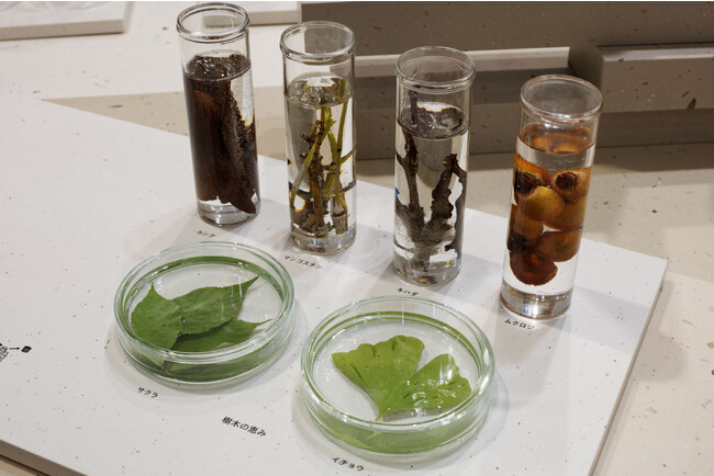 木々の様々な表情を多角的に展示したアトリエで、BAUMを構成する要素を紐解き、樹木成分・樹木の香りなどを通じ、樹木の魅力に触れていただくことができます。