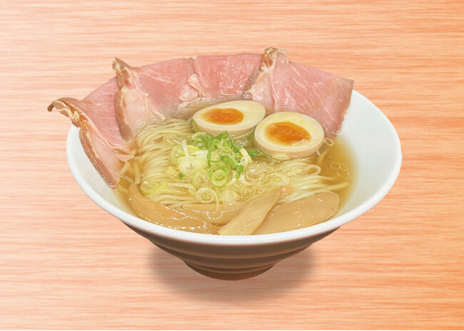 魚介旨塩ラーメンに、味玉・チャーシューを2枚トッピングしたボリューム満点の一杯。当店イチオシのメニューです。