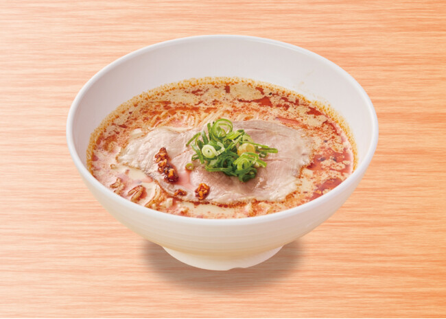 「ラーメンステーション北野田」の記念すべき第1弾ラーメン。豆乳ベースで辛すぎずマイルドに仕上がったスープと、レアチャーシューのなめらかな食感がたまらない一杯。別売の〆のチーズリゾットをスープに投入すると、とろりとチーズがとろけて満足度がさらにアップ。スープを余すところなく味わうことができます。