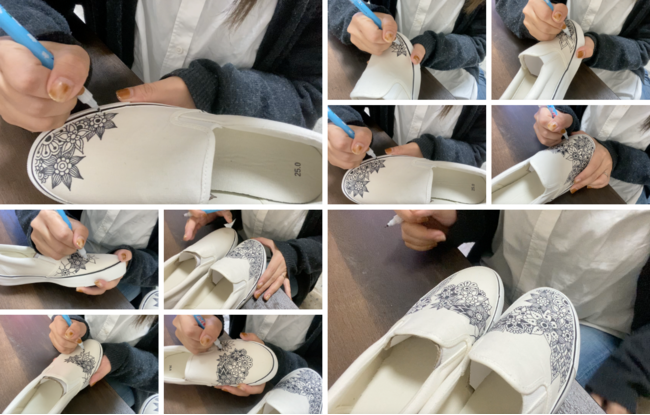 集合体アートシューズは1足1足全て手描きで描き上げていきます。