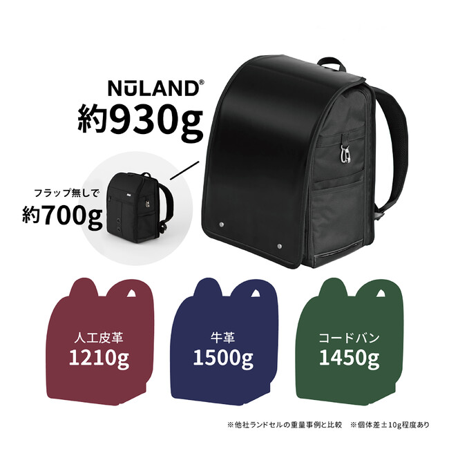 NuLAND(R)は、環境にも子どもの身体にも優しい新時代のランドセル。RENU(R)という捨てられる生地から作られた循環型のリサイクル生地を使用しています。 素材もサスティナブルですが、フラップを外すとリュックにもなるため、「卒業したら捨てる。」という製品ではなく、用途を替えて使い続けることができるため「素材としてもサスティナブル・用途としてもサスティナブル」。そして布だからこそ実現出来た子どもの身体のための「軽さと背負いやすさ」を兼ね備えた、新時代のスクールバッグです。