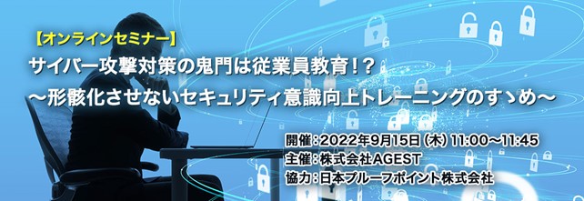 【AGEST/セキュリティセミナー】サイバー攻撃対策の鬼門は従業員教育!?~形骸化させないセキュリティ意識向上トレーニングのすゝめ~