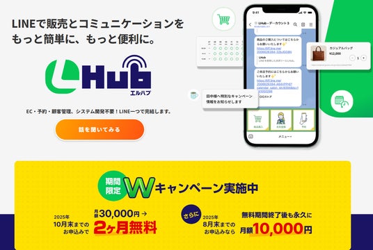 株式会社ペイメントフォー(本社:東京都港区、代表取締役社長:山崎 祐一郎、旧社名:株式会社メタップスペイメント)は、2025年6月にリリースしたLINE公式アカウント連携型サービス「LHub」において、月額無料キャンペーンを実施いたします。