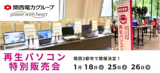 株式会社ポンデテック(関西電力グループ)が運営するPC nextは、2025年1月に堺市、松原市、羽曳野市の3都市で「再生パソコン特別販売会」を開催します。高性能で安心して使える再生パソコンを、会場限定の特別価格でご提供!当日購入者にはワイヤレスマウスをプレゼントする特典もご用意しています。普段はインターネット通販のみの販売のため、特別販売会は実物を手に取ってサイズや使用感を確認できるチャンスです。近隣にお住まいの方はぜひこの機会にパソコンの買い替えをご検討ください。