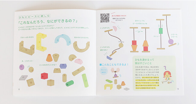 無限に遊べると言っても、新しいあそびかたを見つけるのが難しそう。どうやって子どもに声掛けをしたらいいかわからない・・そんな心配がある方でも大丈夫。子育てを応援するおもちゃでありたいという想いから、たくさんのあそび例や、子どもへの声掛けのヒントが詰まった【ブックレット】が付いています。