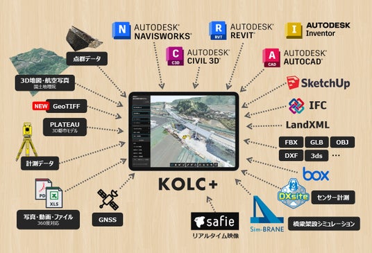 KOLC+は、BIM/CIMモデルや点群をクラウド上で統合・共有・活用できる「デジタルツイン現場クラウド」です。国土交通省などの情報共有システム(ASP)としても利用でき、利用社数は500社以上になっています。国土交通省の「建築BIM加速化事業」での補助対象ソフトウェアにも認定されています。