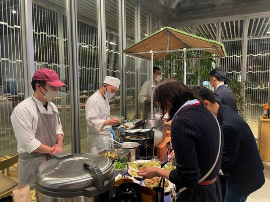 emCAMPUS FOODにて参加生産者さんの食材を使った料理を提供する、立食形式の交流会を開催!