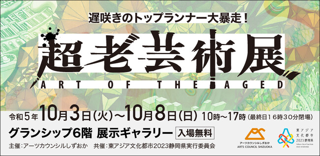 『超老芸術展 ~遅咲きのトップランナー大暴走!~』、昨年NHK全国版で特集され話題を呼んだ「超老(ちょうろう)芸術」。10/3(火)~10/8(日)、初の大規模展覧会をグランシップにて開催します。