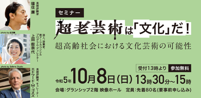 「超老芸術」をはじめとした市井の高齢者による芸術表現の魅力を紹介しながら、超高齢社会における文化芸術の可能性について語り合います。豊かな人生を送るためのヒントが詰まっています。