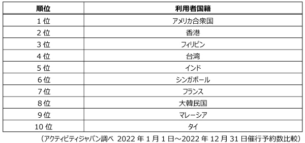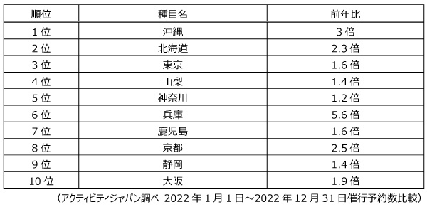(アクティビティジャパン調べ 2022年1月1日~2022年12月31日催行予約数比較)