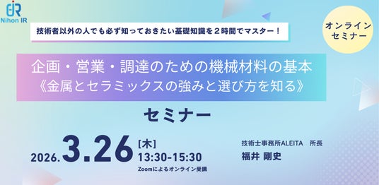 - 講座名:企画・営業・調達のための機械材料の基本《金属とセラミックスの強みと選び方を知る》