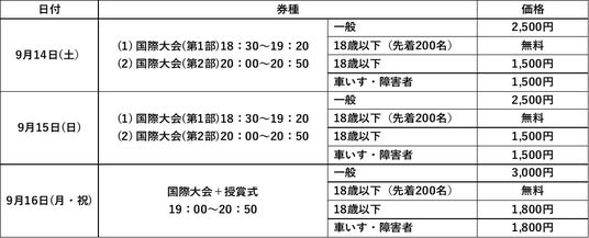 2024年9月14日(土)、15日(日)/国際大会(2回公演)