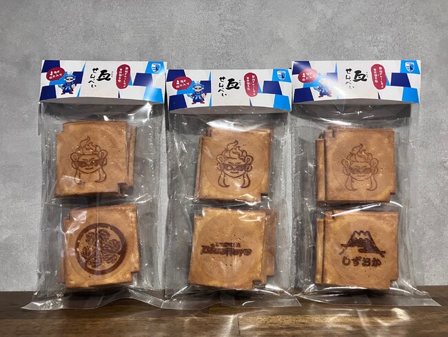 レヴズくん、ロゴ、しずおか、葵紋の 4 種の焼印入りのオリジナル瓦せんべいセットです!静岡土産とし て是非お買い求めください。
