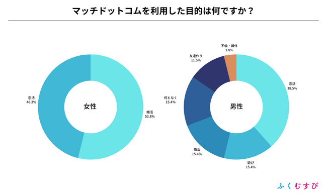 ・男性がマッチドットコムを利用した目的は、恋活が1位、遊びが2位となりました。