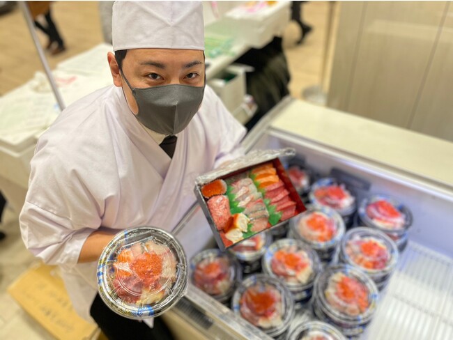 転職エージェントを事業とする株式会社ユニポテンシャル(東京都渋谷区神宮前 代表取締役 蛎田一博)が運営する鮨屋「有楽町かきだ」が、有明ガーデンにて開催中の「築地魚河岸 丸集フェア」にコラボ出店。2022年12月27日(火)~2022年12月31日(土)の5日間、海鮮丼と手巻き寿司セットを限定数販売する。