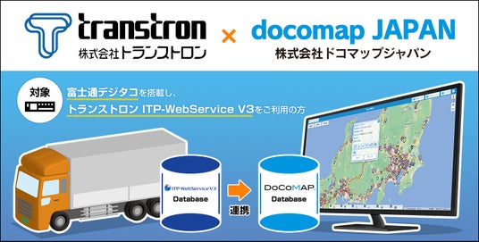 株式会社ドコマップジャパン(本社:東京都港区、代表取締役:浦嶋一裕、以下 ドコマップジャパン)は、株式会社トランストロン(本社:神奈川県横浜市港北区、代表取締役社長:林瑞泰、以下 トランストロン)が提供する「ITP-WebService V3※1(アイティーピーウェブサービス ブイスリー)」とドコマップジャパンの「DoCoMAP※2(ドコマップ)」とを連携し2024年12月より提供を開始しました。