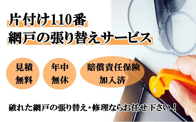網戸が活躍する暑い夏がやってきましたが、破れていると虫が入ってきて安心できません…!そこで弊社の「片付け110番」に7月、網戸の張り替え・修理をご相談いただく専用コーナーを作成しました。サービスの特徴や料金などの情報をご紹介しています!