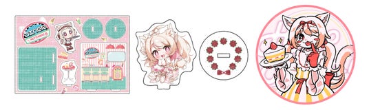 天曰ひよ「ショートケーキガール」楽曲リリース・MV公開記念グッズ 左からアクリルジオラマ・アクリルスタンド・ブランケット