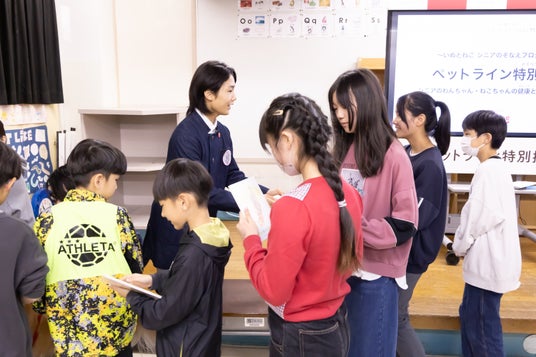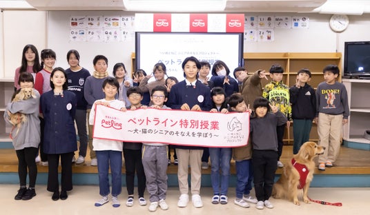 国産ペットフードメーカー ペットライン株式会社(本社 神奈川県横浜市/代表取締役社長 小沼 亮)は、今年4月にスタートした「いぬとねこ シニアのそなえプロジェクト」の一環として、犬猫のシニア期へのそなえを子どもたちに伝える「ペットライン特別授業」を2024年12月12日(木)に行いました。