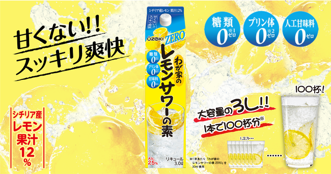 レモンサワー市場が拡大を続ける中で、当社は健康を意識する方に楽しんでいただける糖類・プリン体・甘味料の3つがゼロ(※1)の「わが家のレモンサワーの素ZERO」を発売し、大変ご好評をいただいております。昨今、様々な商品の値上げが続く中、コスパ(※2)や節約への意識が高まっています。そこで、大変お得な100杯分(※3)の大容量サイズ、3Lを発売します。
