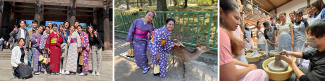 当協会では、支援している外国人に対して、在日期間を就業だけを目的とするのではなく、文化や日本ならではの体験を提供する目的で、当協会スタッフとの交流イベントを定期開催しています。今回は関西地区では初となる交流会として、着物・陶芸など日本の文化を体験する「奈良観光ツアー」を開催し、総勢12名の外国人の方々に参加いただきました。
