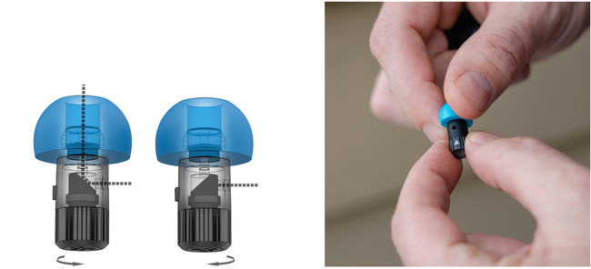 耳栓の底部分をひねってノイズ低減レベルを変更できます。