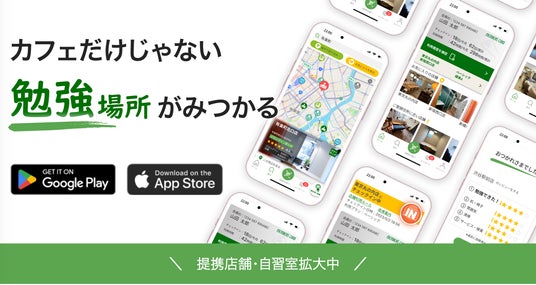 「スタディGO」は、勉強・自習・読書・作業・テレワークの場を探す学生や社会人を対象とした、国内最大級の専門アプリです。