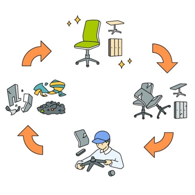 家具で使用している主な材料を、新たな製品に生まれ変わらせることで循環型経済の実現に貢献します。