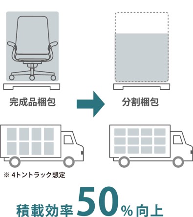 また、配送時に製品を分割した状態で梱包・出荷することで運搬における配送効率や燃費が向上し、CO2の排出を抑制します。