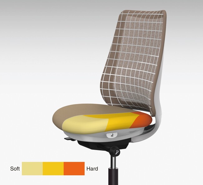 座:硬さの異なる3種類のウレタンを一体成型した異硬度クッション