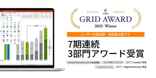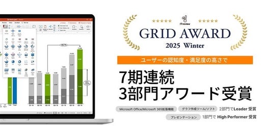 PowerPoint(以下パワポ)拡張ツール「think-cell」を提供する think-cell Japan株式会社(本社:東京都千代田区、代表取締役:松塚展国、以下 think-cell Japan)は、アイティクラウド株式会社主催「ITreview Grid Award* 2025 Winter」においてグラフ作成ツール/ソフトとMicrosoft Office/Microsoft 365拡張機能の2部門で「Leader」を、プレゼンテーション部門で「High Performer」を、7期連続で受賞しました。